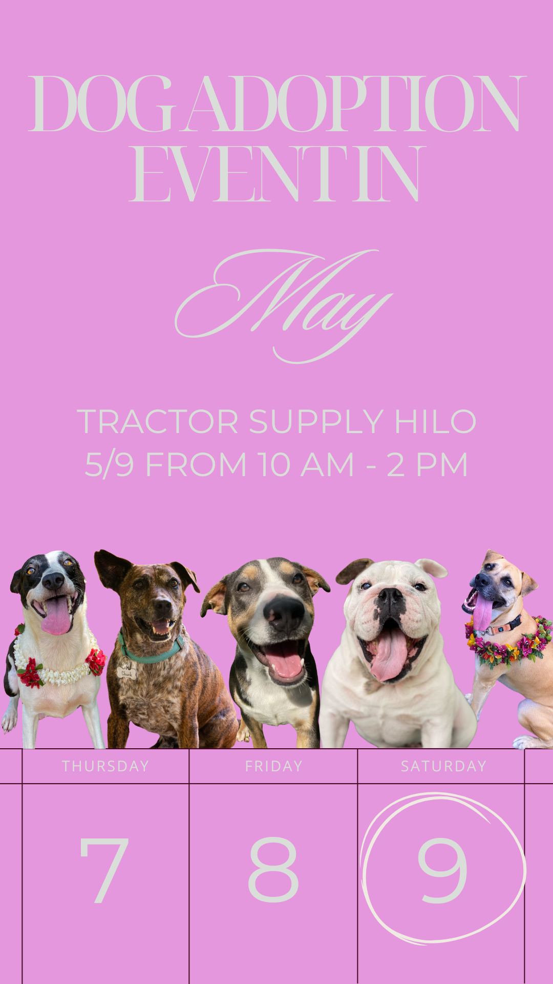 Get ready for tail wags, happy paws, and maybe even a life-changing connection. Aloha ʻĪlio Rescue is bringing some of our adorable, adoptable dogs to Tractor Supply Company on Saturday, May 9.