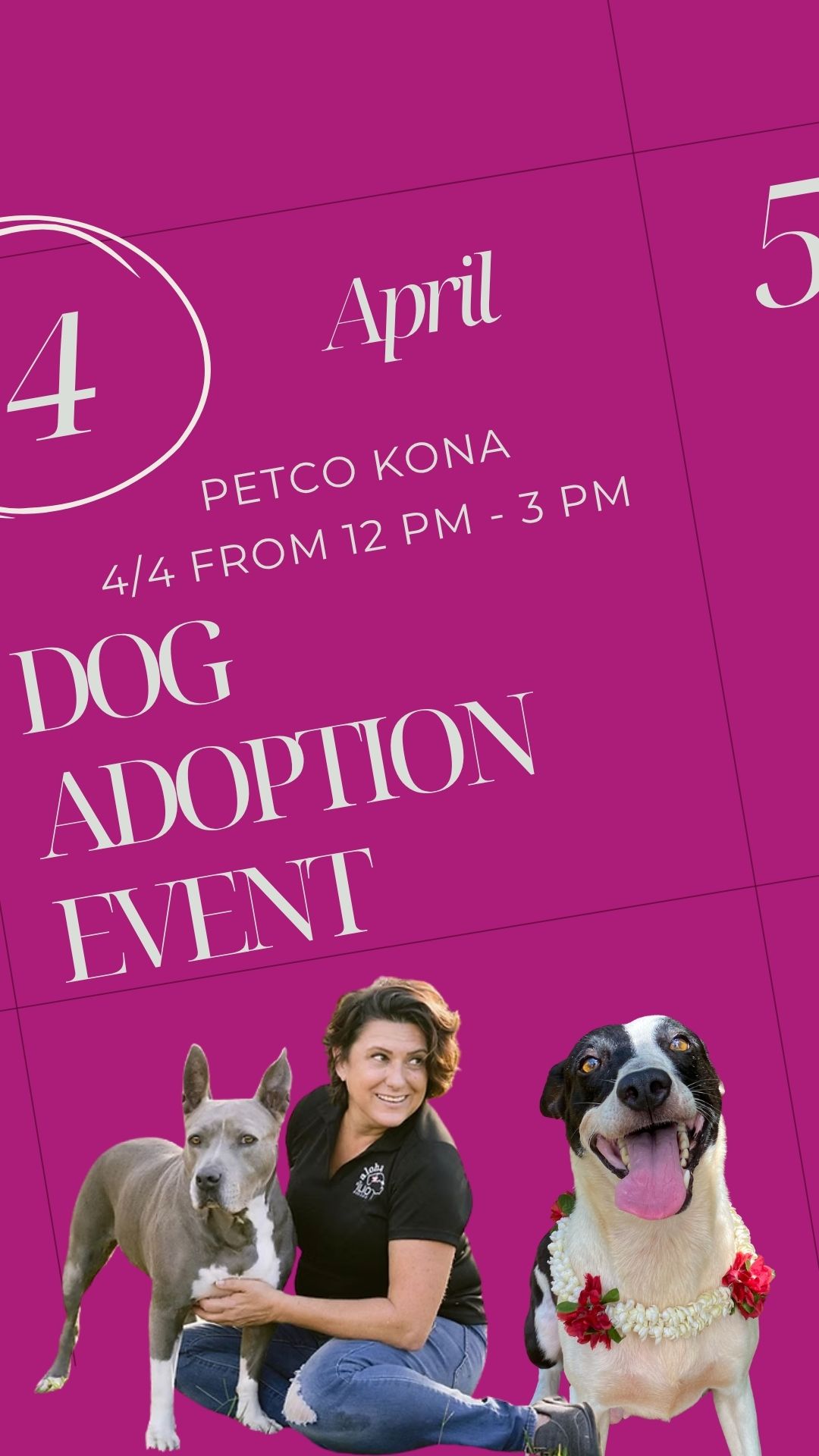 Get ready for tail wags and happy paws! Aloha ʻĪlio Rescue is bringing adorable adoptable dogs to Petco in Kona on Saturday, April 4—stop by to meet your new best friend, learn about fostering, or just say hi and get some puppy love!